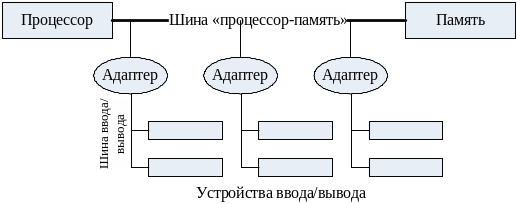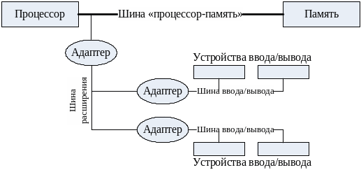 Хотя контроллеры устройств ввода/вывода (УВВ) могут быть подсоединены непосредственно к системной шине, больший эффект достигается применением одной или нескольких шин ввода/вывода. УВВ подключаются к шинам ввода/вывода, которые берут на себя основной трафик, не связанный с выходом на процессор или память. Адаптеры шин обеспечивают буферизацию данных при их пересылке между системной шиной и контроллерами УВВ. Это позволяет ВМ поддерживать работу множества устройств ввода/вывода и одновременно «развязать» обмен информацией по тракту процессор-память и обмен информацией с УВВ.