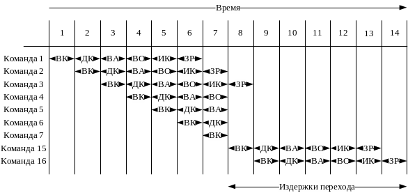 Рис. 51. Влияние условного перехода на работу конвейера команд.
