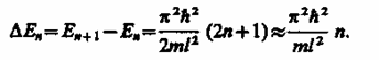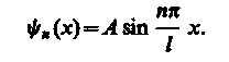 т. е. стационарное уравнение Шредингера, описывающее движение частицы в «потенциальной яме» с бесконечно высокими «стенками», удовлетворяется только при собственных значениях , зависящих от целого числа n. Следовательно, энергия En частицы в «потенциальной яме» с бесконечно высокими «стенками» принимает лишь определенные дискретные значения, т. е. квантуется. Квантованные значения энергии En называются уровнями энергии, а число л, определяющее энергетические уровни частицы, называется главным квантовым числом. Таким образом, микрочастица в «потенциальной яме» с бесконечно высокими «стенками» может находиться только на определенном энергетическом уровне En, или, как говорят, частица находится в квантовом состоянии n.
