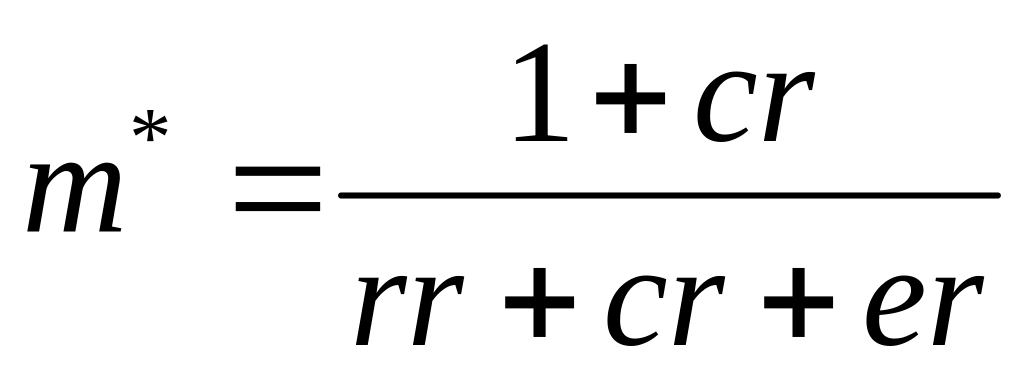 Данная функция предложения денег предполагает, что банки используют все свои резервы. Если допустить, что коммерческий банк по каким-либо причинам стремятся застраховать себя от непредвиденных последствий избыточными резервами, то денежный мультипликатор принимает вид: