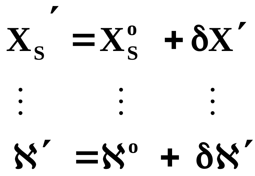 Для этого уравнения (1.5.2), приводят к линейному виду, раскладывая их в ряд Тейлора с сохранением членов только первого порядка малости, и переходят к уравнениям поправок.