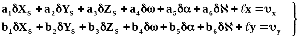 Неизвестными величинами в уравнениях (1.5.2) являются 6 элементов внешнего ориентирования снимка Xs,Ys,Zs,,,.