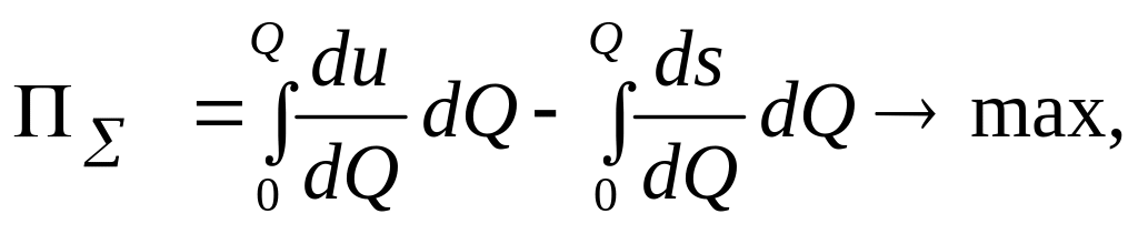 Максимум сумарного ефекту досягається за обсягів виробництва (Qopt), котрі характеризуються співвідношенням