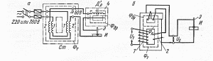 Фш–магнитный поток, создаваемый параллельной обмоткой возбуждения ШО; Р–реостат; ПН–последовательная (подмагничивающая) обмотка; Фс–магнитный поток подмагничивающей обмотки