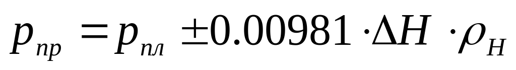 Давление, отнесённое к этой плоскости, называется приведённым пластовым давлением. Его определяют по формуле: