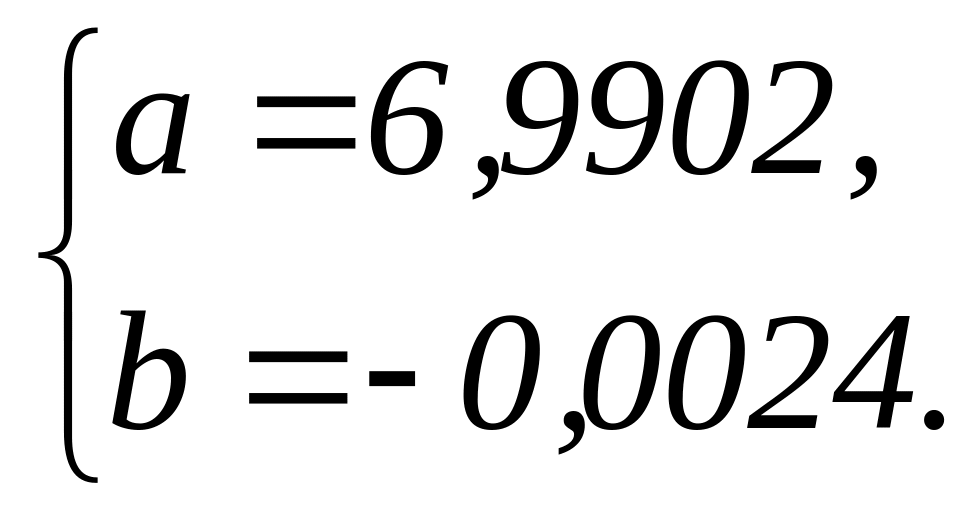 А.Рассмотрим линейную регрессию. Для этого воспользуемся методом наименьших квадратов и решим систему уравнений относительно а и b:
