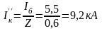 Ударный ток найдем следующим образом, учитывая, что коэффициент ударный Ку равен 1,369: