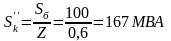где Sс – номинальная мощность системы электроснабжения, в нашем случае равна бесконечности, МВА;