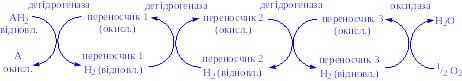б) функцію компонентів дихального ланцюга забезпечуючи транспорт електронів від субстрату на кисень: