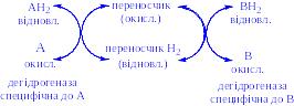 а) перенесення водню з одного субстрату на інший в спряженій окисно-відновній реакції: