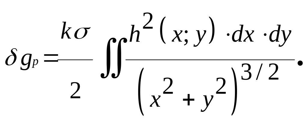 Для вычисления поправки за рельеф с помощью ЭВМ более удобными оказались квадратные палетки. При этом с топокарты по регулярной квадратной оси снимают высотные отметки местности, т.е. создают цифровую модель местности (ЦММ). Детальность снятия высот (шаг ЦММ) зависит от требуемой точности вычисления поправки и степени расчлененности рельефа. Основой алгоритмов при решении задачи служит формула притяжения элементарного параллелепипеда (рис. 2.26 б):