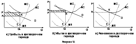 Таким образом, фирма при монополистической конкуренции в коротком периоде ведет себя как монополист, стремясь максимизировать прибыль (минимизировать убытки).