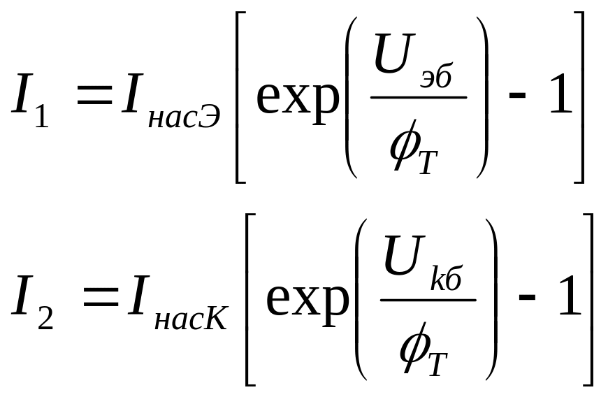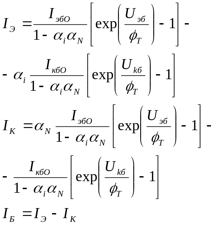 Учитывая это условие можно получить систему выражений для тока эммитера, коллектора и базы. Эта система уравнений получила называние Эберса-Молла.
