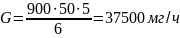 G - количество вредных веществ, поступающих в воздух рабочей зоны, мг/ч.;