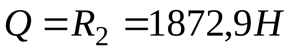 сила, действующая по нормали на опору R2 = 1872,9 Н;
