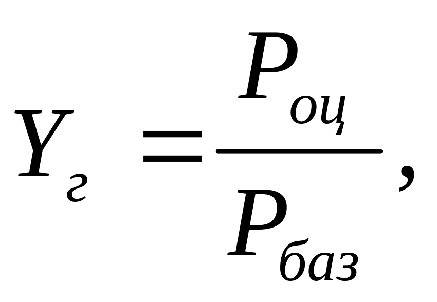 где Yг уровень определяющего (главного, важнейшего) показателя продукции, принимаемый за показатель качества, Роц значение оценочного (главного, определяющего) показателя единицы оцениваемой продукции, Рбаз базовое значение того же главного (определяющего) показателя.
