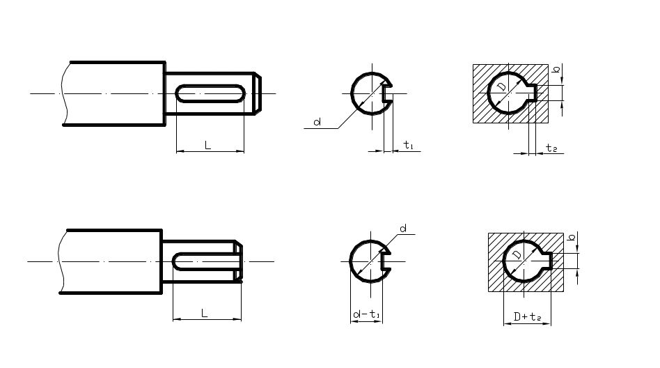 - размер, определяющий глубину паза – для вала t1 (предпочтительный вариант) или d-t1, для втулки D+t2;