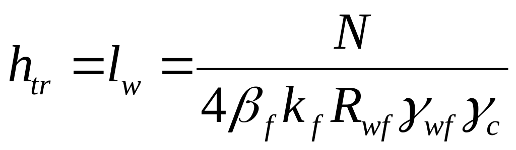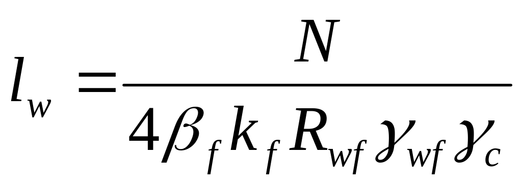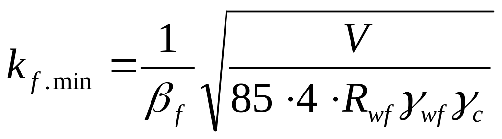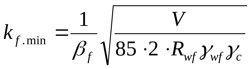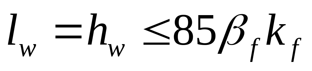 При розрахунку кутових швів з’єднання ребра оголовка з стінкою, мінімальний катет визначаємо за формулою:
