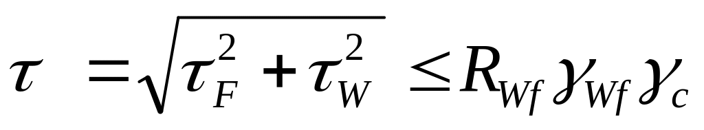 Оскільки напружений стан кутових зварних з’єднань характеризуються наявністю тільки дотичних напружень, то апроксимація складного напруженого стану виконується як геом. сума компонентів напруженого стану.