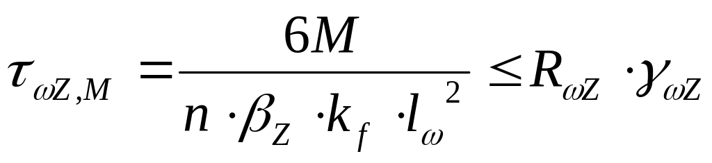 Перевіряємо напруження в швах від сумісної дії перерізуючої сили F і згинального момента М.