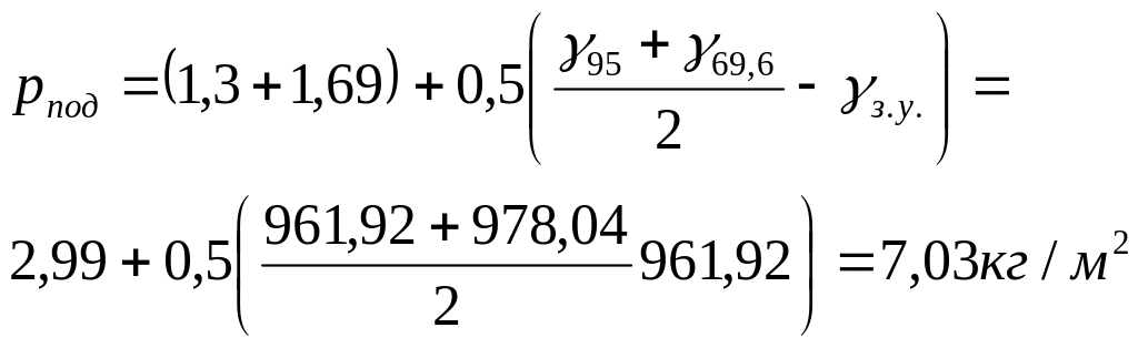 ρ1=3·968,71+3·972,57+2·977,81-(3+3+2)961,92=75 кГ/м2,