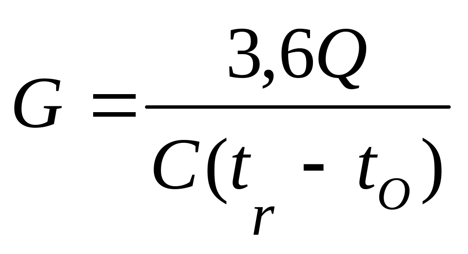 4. Определяется расход воды через расчетные участки по тепловой нагрузке к разности температур теплоносителя в системе