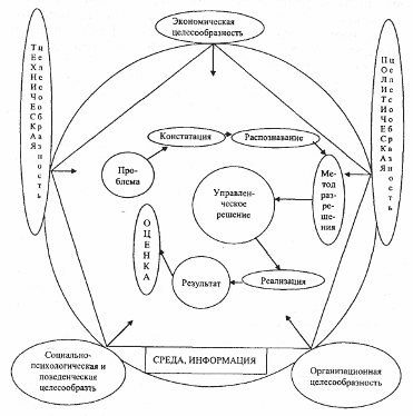 Многообразие конкретных схем разрешения проблемных ситуаций, требующих разработки, принятия и реализации управленческих решений обуславливается большим разнообразием сочетания интуиции и логики, неформальных методов разработки решений, множеством особенностей конкретных условий принятия и реализации решений, порождаемых средой, присутствием человеческого фактора со специфическими поведенческими и психофизиологическими аспектами, а также располагаемым информационным ресурсом.