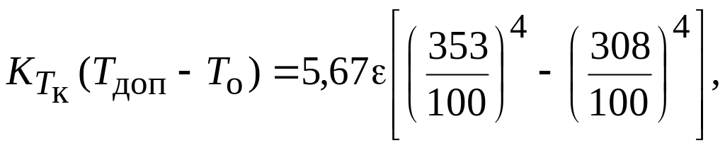 где Т1 и Т2 – температуры поверхности медной круглой шины и внутренней поверхности трубы, K; ε1 и ε2 – степень черноты полного излучения поверхности шины и внутренней поверхности трубы; F1 и F2 – поверхности шины и трубы, м2.