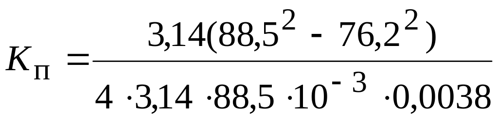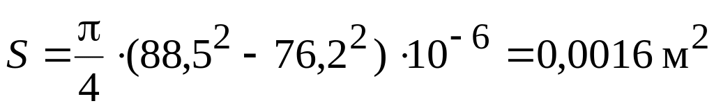 где S=π(42-3,82)·10-6=4,9·10-6 м2; F=πdвн·1=3,14·7,6·10-3=23,86·10-3 м2;