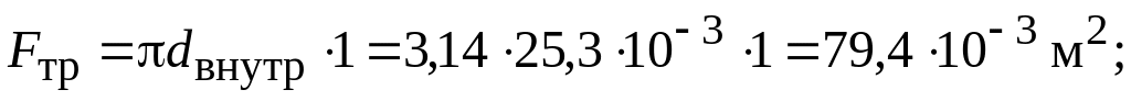 F= πdвнlтр=3,14·12·10-3·3,364=126·10-3 м2;
