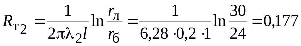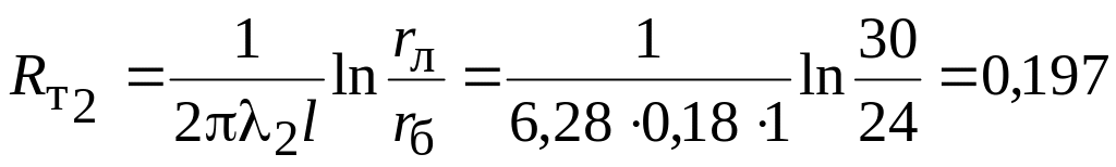 λ1=0,14 Вт/(м·К) (бумага); λ2=0,18 Вт/(м·К) (лакоткань); l=1 м;