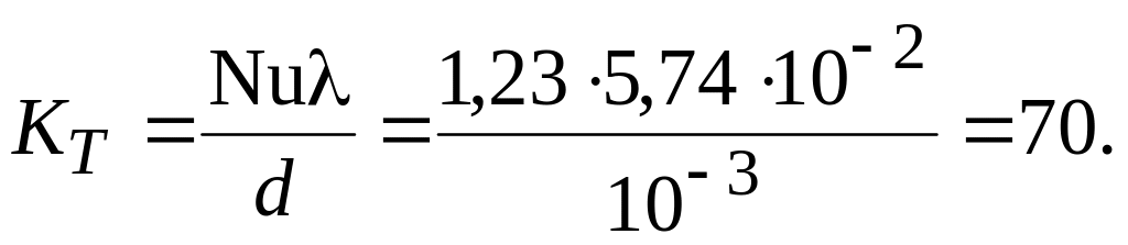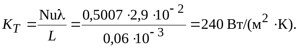 Определим коэффициент теплопередачи из критерия Нуссельта: