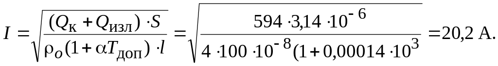 где ρо=111·10-8 Ом·м; α=0,00014 К-1; S=πr2=3,14·0,52·10-6=0,785·10-6 м2; l=1 м; F=πd·1=3,14·10-3;