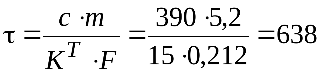 Определить время, через которое медная шина с размерами поперечного сечения 100×6 мм нагреется переменным током I=500 А до температуры t=100 ºС, если она находится в спокойном воздухе с температурой t0=35 ºС, коэффициент теплоотдачи с наружной поверхности шины kт=15 Вт/(м2·К), а начальная температура шины tн=50 ºС.