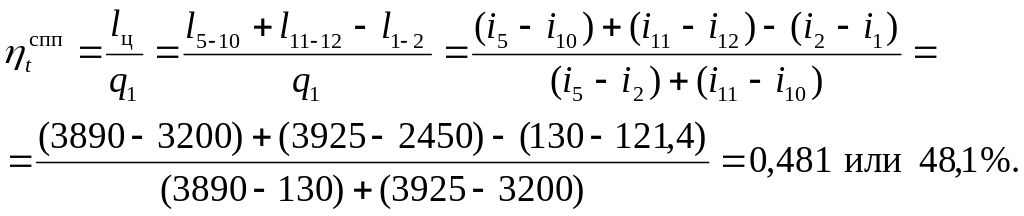 Для расчёта цикла с промежуточным пароперегревом воспользуемся формулой: