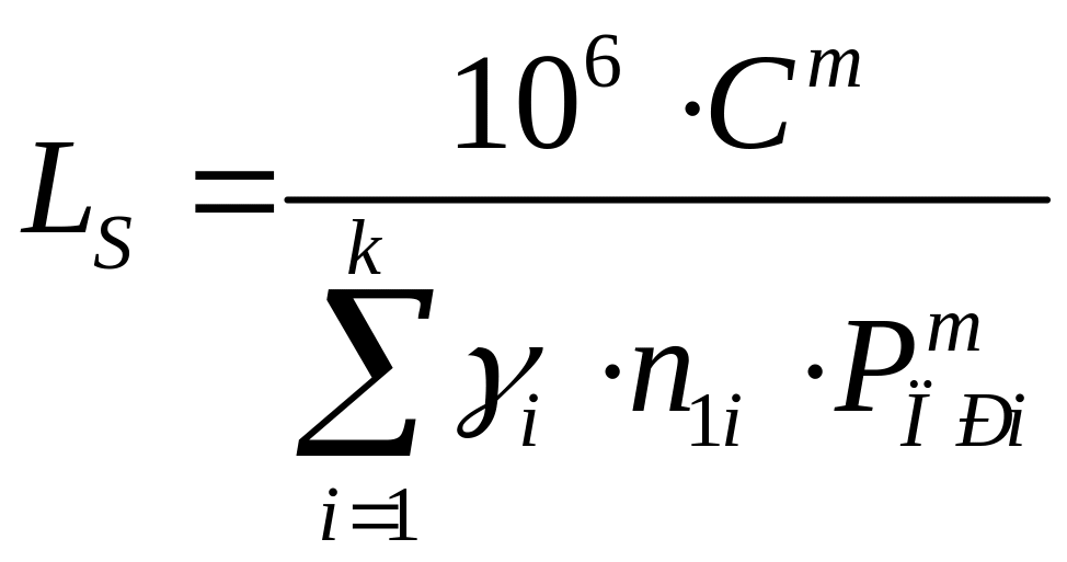 Срок службы подшипника при переменных режимах работы можно определить на основе гипотезы линейного суммирования повреждений по формуле: