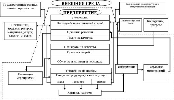 Традиционно под управлением качеством понимается один из аспектов управления предприятием, а именно воздействие на производственный процесс в целях обеспечения требуемого качества продукции и услуг.
