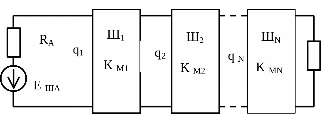 Рисунок 1.3 – Последовательное соединение шумящих каскадов додетекторного