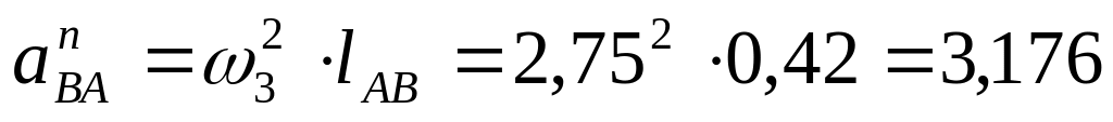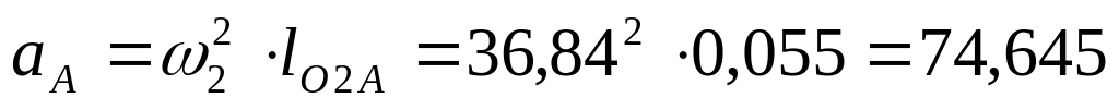 Ускорение точки А относительно точки О2 определяется только нормальной составляющей ускорения, так как ω2 – постоянна.