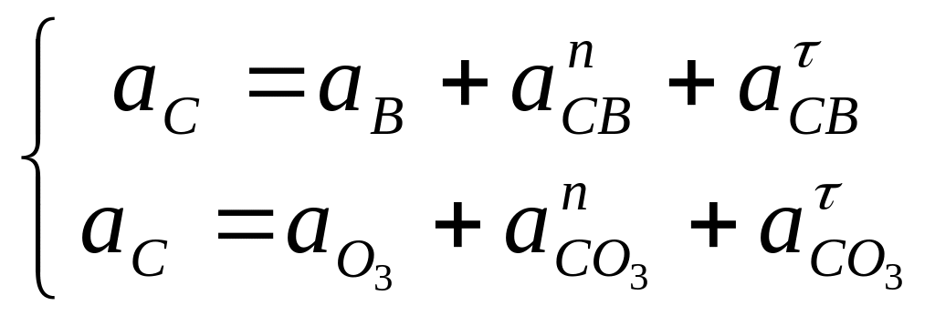 где аС – ускорение точки С, неизвестное по направлению и величине;