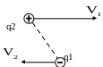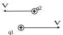 8. Магнитная сила, действующая на заряд q2 со стороны заряда q1, равна нулю в момент времени, когда скорость направлена вдоль прямой соединяющей заряды.
