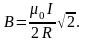 9.4. Выведите формулу для модуля индукции результирующего магнитного поля, созданного тремя параллельными прямыми бесконечно длинными проводниками, по которым текут одинаковые по модулю токи, в точке А (см. рисунок). Проводники перпендикулярны к плоскости чертежа; направление токов указано на рисунке. Укажите номер формулы, совпавшей с вашей.