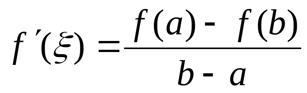 Тогда внутри отрезка существует по крайней мере одна такая точка , в которой производная равна частному от деления приращения функции на приращение аргумента на этом отрезке, т.е.