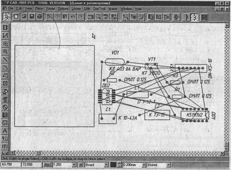 Задача розміщення елементів на печатній платі вирішена і можна приступати до трасування печатних провідників на платі.