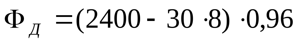 Номінальний фонд часу для одного працівника становить 2400 год на рік. Визначаємо дійсний фонд робочого часу.