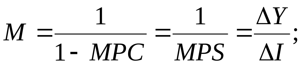 ∆Y – приріст доходу; М- мультиплікатор автономних витрат; ∆Е – приріст сукупних витрат;