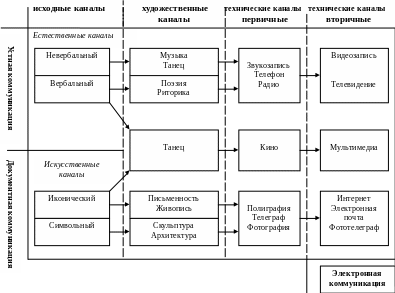 Все остальные каналы имеют искусственное происхождение, они возникают в условиях отсутствия непосредственного контакта участников коммуникации. Эволюция коммуникационных каналов представлена на рис. 1.