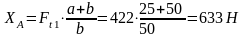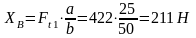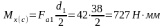 Усилия в зацеплении равны: