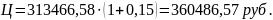 Рассчитаем цену реализации разработанного программного продукта, при условии, что планируемая прибыль от продажи должна составлять не менее 15 %. Цену программного продукта рассчитаем по формуле