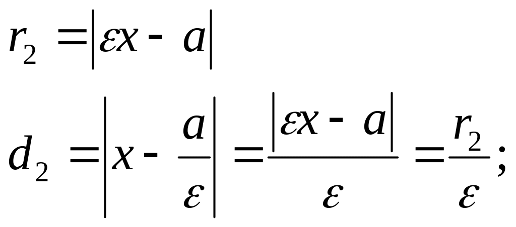 Используя определение эксцентриситета имеем формулы: